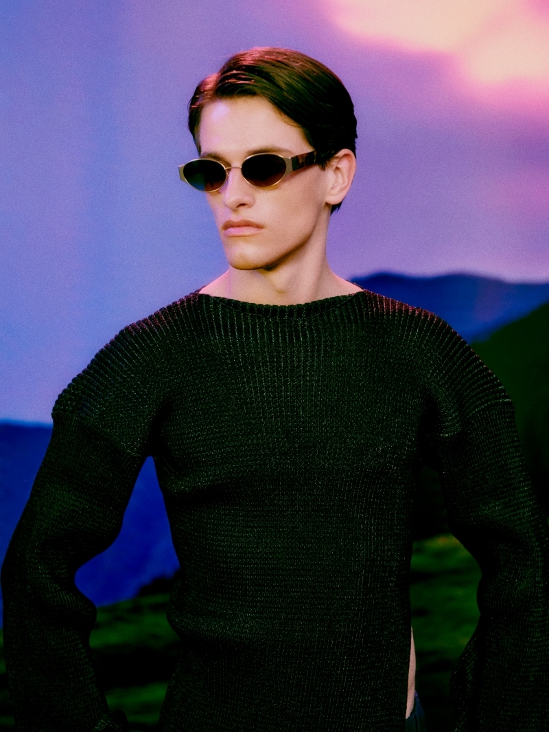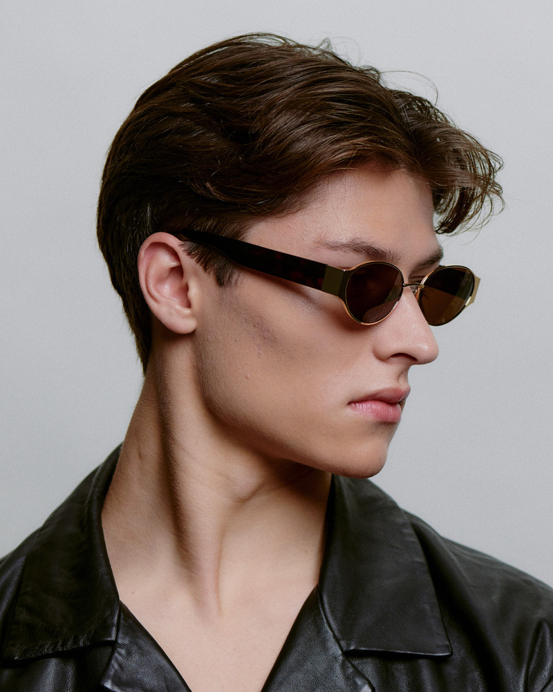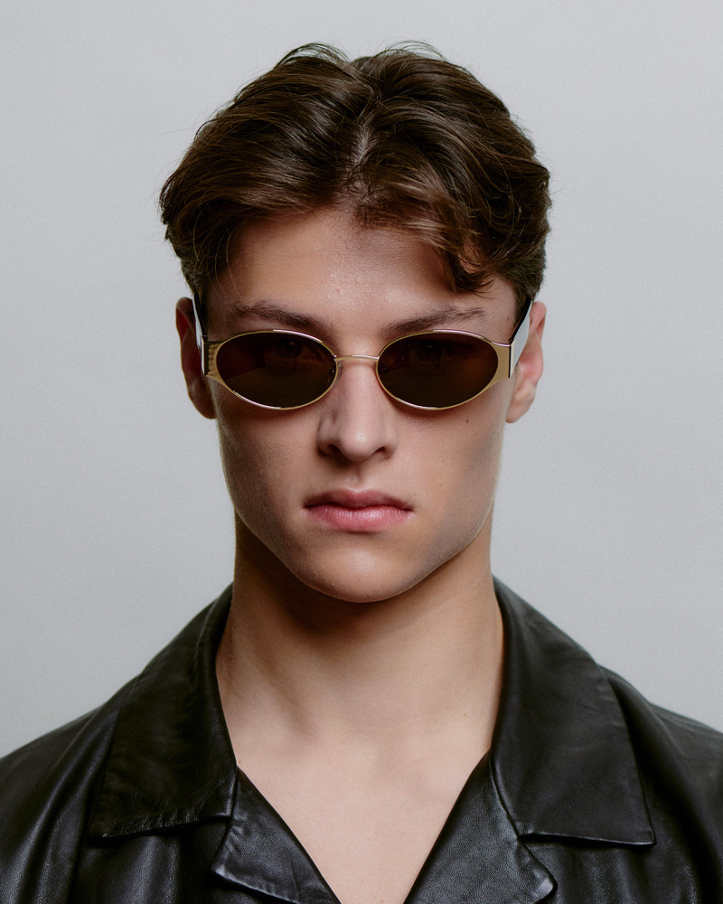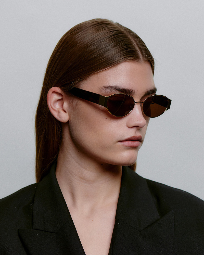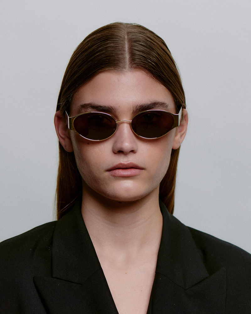 修長鏡型搭配輕量金屬鏡腳,線條俐落而優雅,細節中展現標誌性風格。