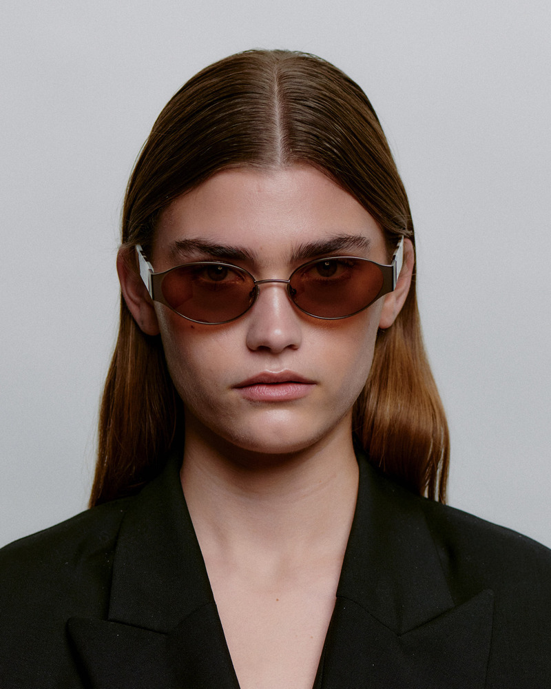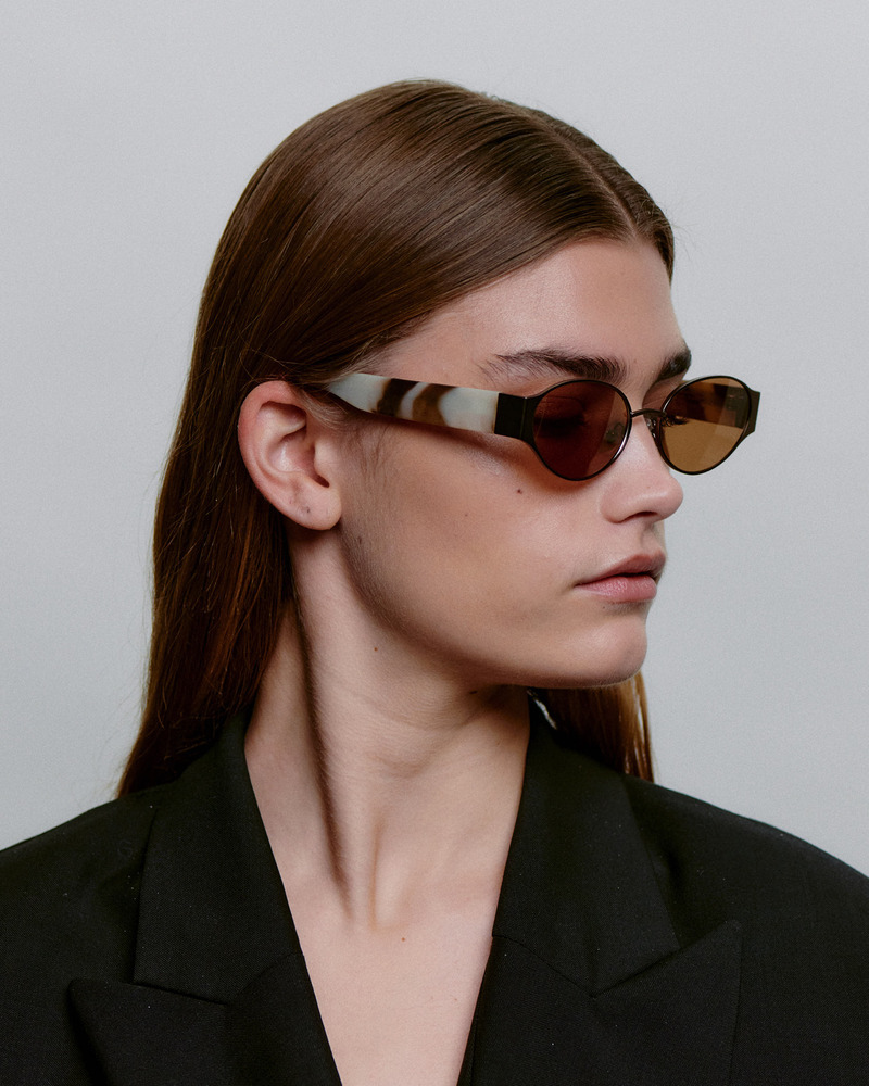 修長鏡型搭配輕量金屬鏡腳,線條俐落而優雅,細節中展現標誌性風格。