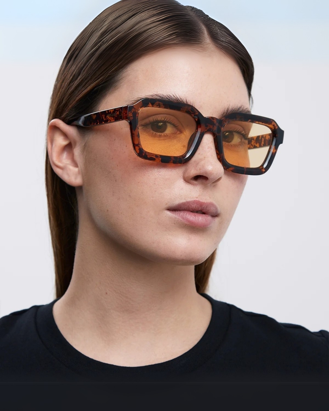 靈感來自 70 年代復古風華, 略寬大的粗框與透光鏡片,
