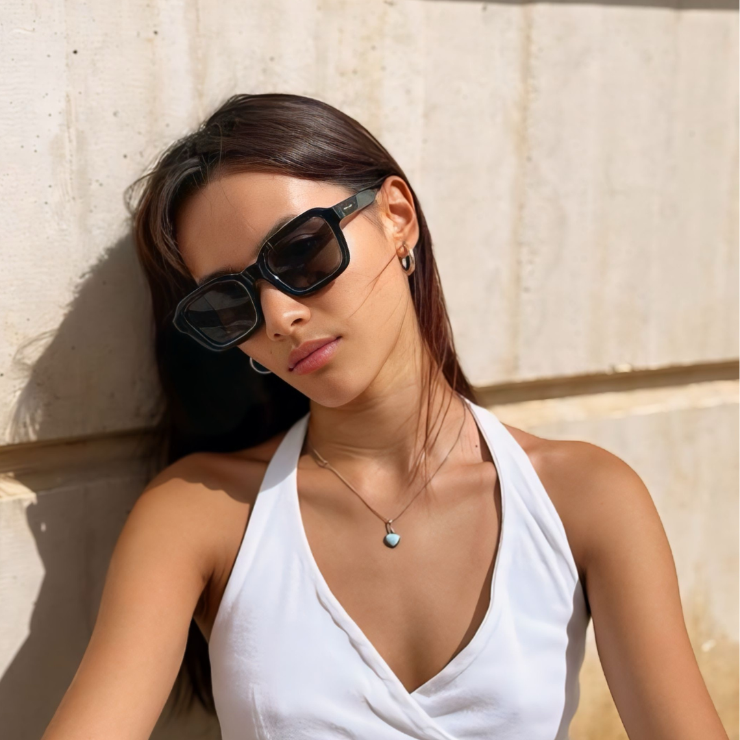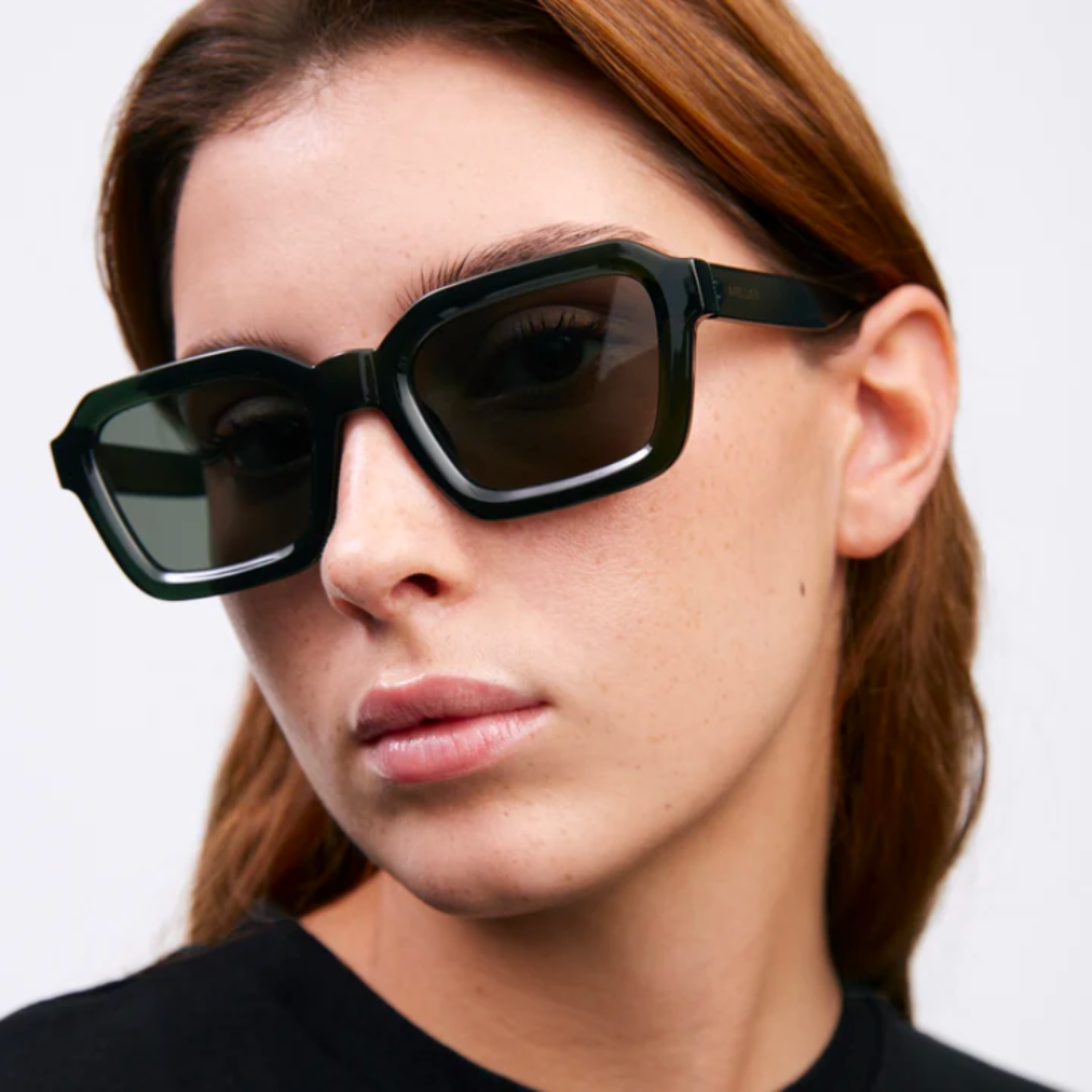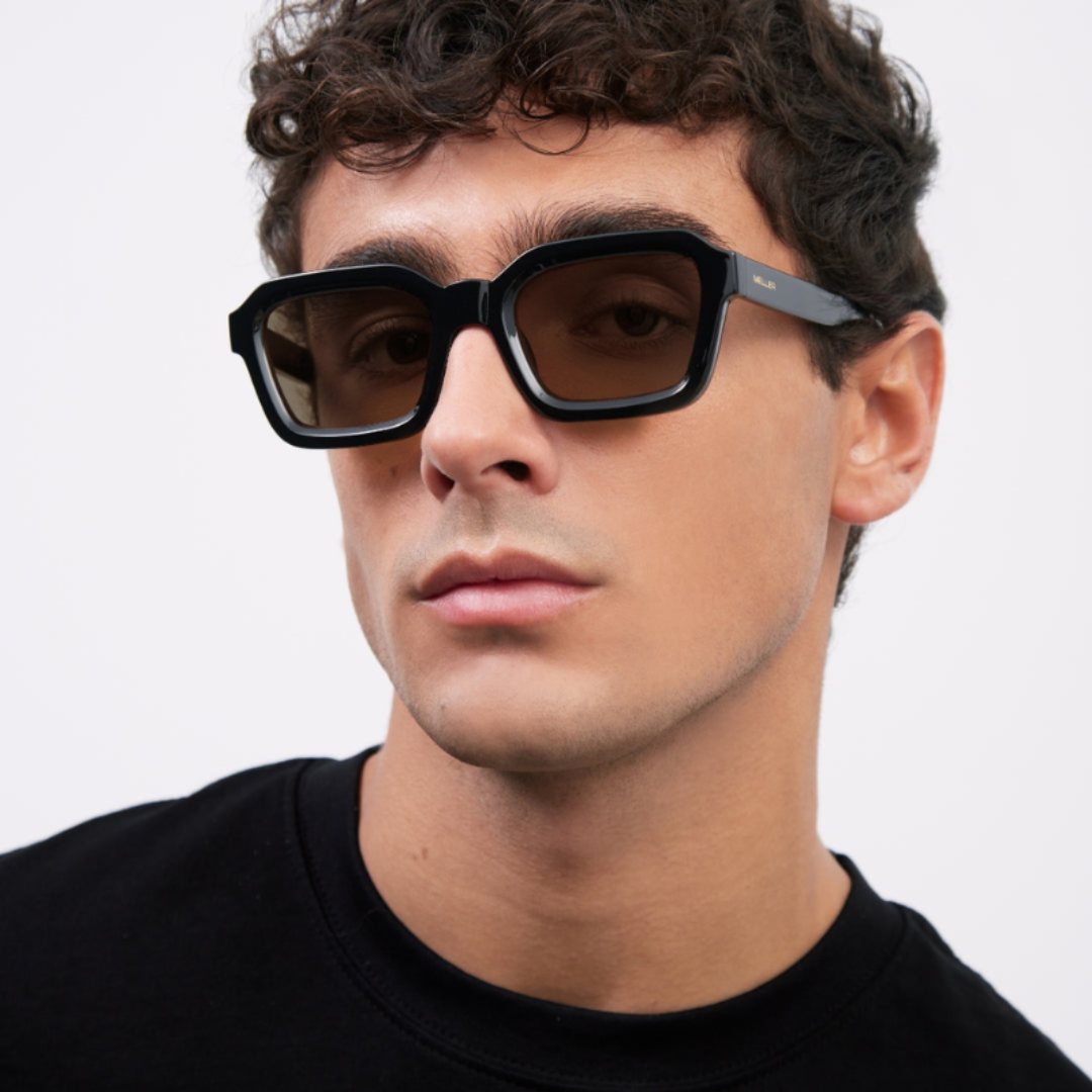 靈感來自70年代復古風華, 略寬大的粗框與透光鏡片,